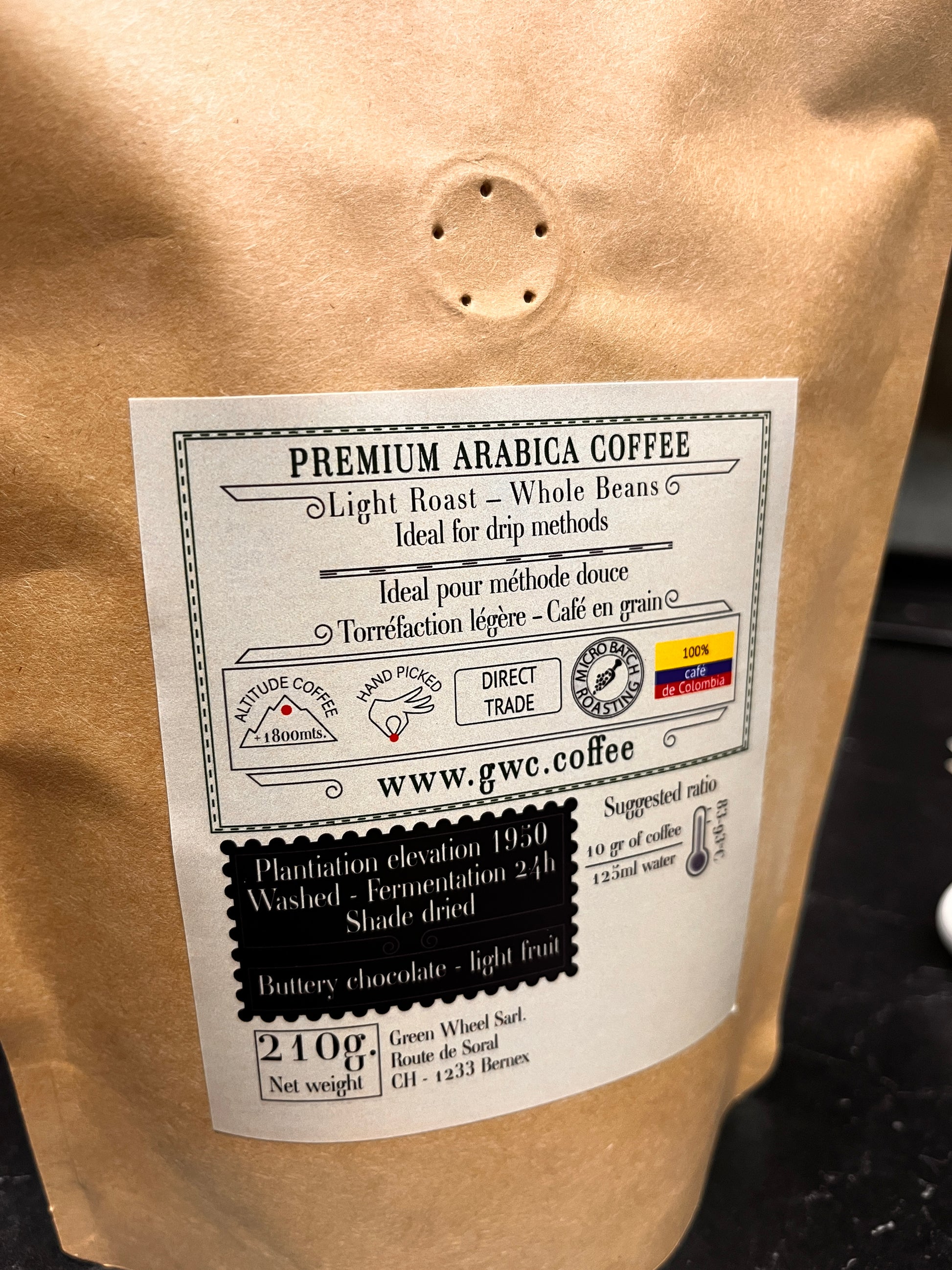Un refinado arábica colombiano cultivado a 1.950 m en las montañas de Caicedo, Antioquia. Lavado, fermentado 24 horas y secado a la sombra, ofrece un perfil de chocolate mantecoso con delicadas notas de fruta ligera. Cosechado a mano, tostado en micro lotes en Ginebra y elaborado para una claridad excepcional en métodos filtrados.